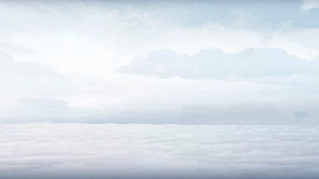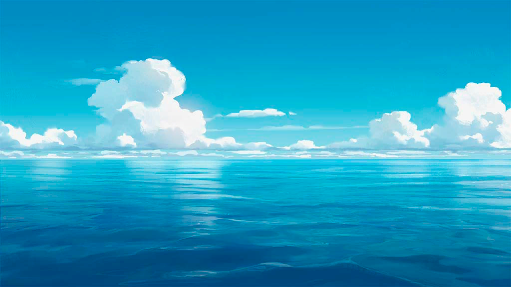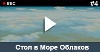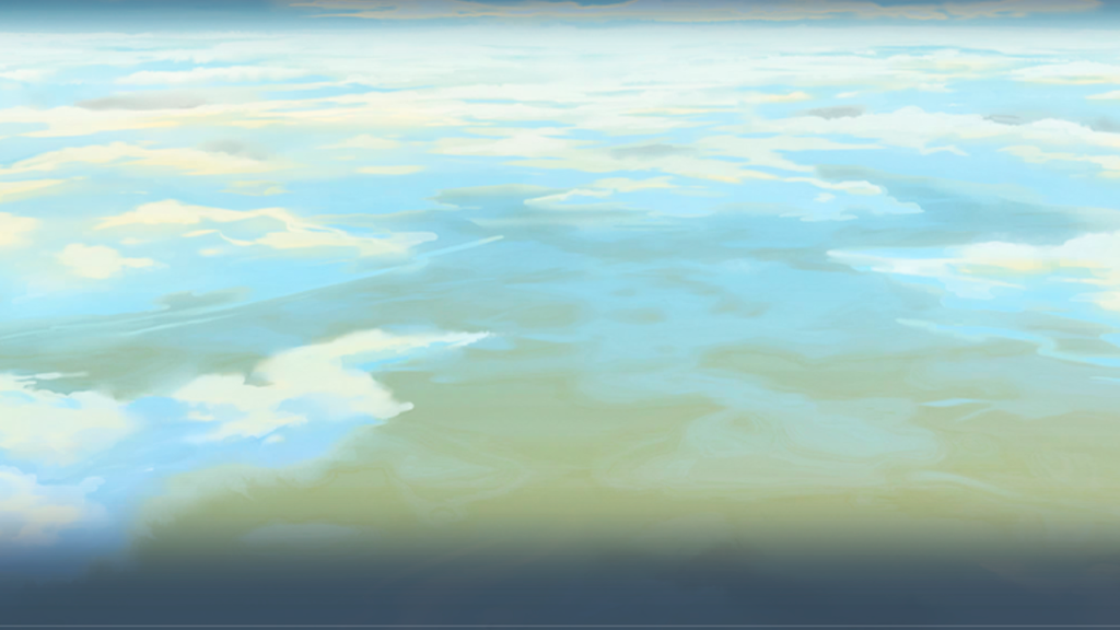 Над бескрайним морем облаков, I-404 кивает нам и делает рукой жест «будьте так любезны». В то же мгновение налетает порыв ветра, и облако у наших ног начинат мягко двигаться вперёд, как ковёр-самолёт. |