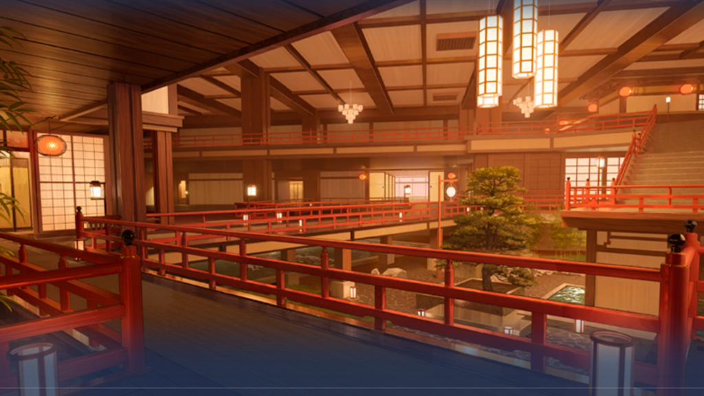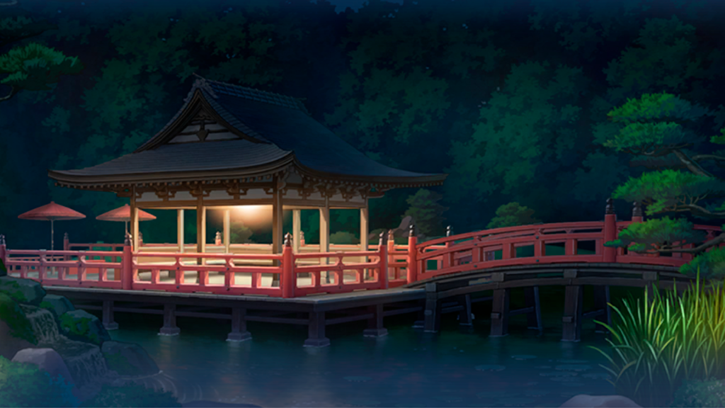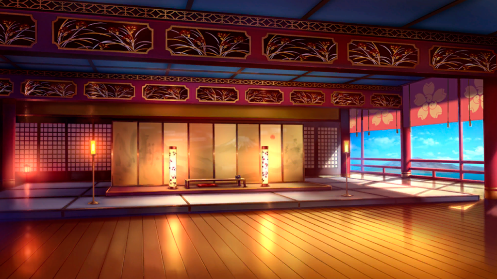 I-404 ведёт нас внутрь пагоды. Как только мы заходим внутрь, наши с Хелена пути расходятся. Она отправляется на другой банкет, а я поднимаюсь на верхний этаж здания. Хотя в комнате за бумажной дверью царит мёртвая тишина, я могу различить несколько фигур по ту сторону. |