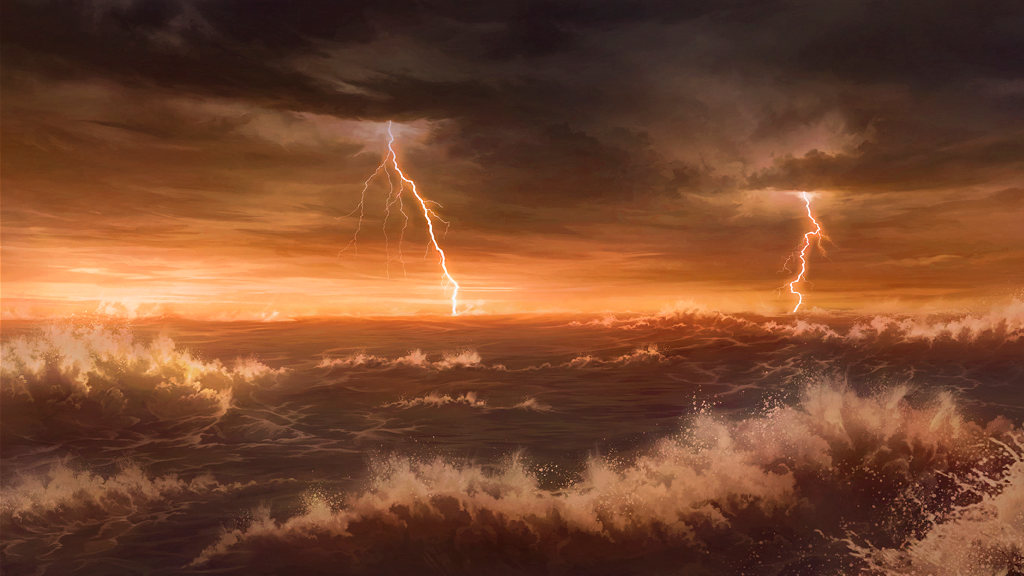 Кажется, что весь мир охвачен пламенем. Моря, Тучи, Даже молнии бьющие с небес. |