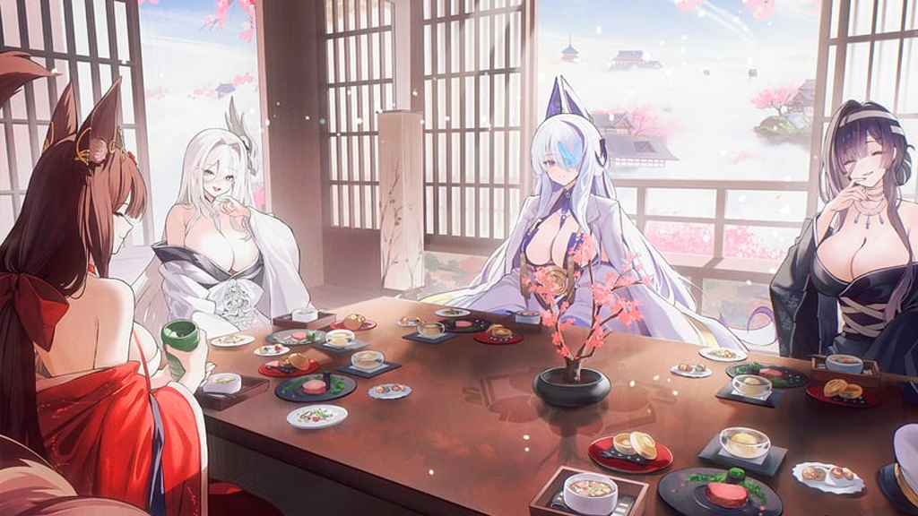 В небольшой комнате стоит деревянный полированный стол. Вскоре он заставляется тарелками с холодными закусками, в честь моего прибытия. Из окон открывается вид на пейзаж залитый ярким солнцем с клубящимися облаками. Легкий ветерок колышет ветку дерева сакуры, и лепестки летают повсюду. Комната проветривается потоком чистейшего воздуха, а за окном цветёт сакура, композиции прекрасно дополняют друг друга. Порывы ветра разносят танцующие лепестки цветов по этому небольшому пространству. Я бросаю взгляд на четырёх человек, которые сидят со мной за столом. С двумя из них я уже знаком. Великий Мудрец Ундзен - одна из них. Мы встречались всего раз, несколько лет назад. Она помогала нам во время инцидента Нарака, а также в День Погасших Звёзд. Она садится напротив меня и слегка кивает. Другой человек - это та, кого я встречал за пределами Сингулярности Нарака и с кем сражался и как союзник и как враг. Бывший игрок Империи Сакура, с которым я поклялся когда-нибудь попутешествовать. Акаги. После того, как она была отстранена от всех официальных должностей, и чтобы поразмыслить над своими ошибками её сослали в Ама Но Тобира, было удивительно, но в то же время, вполне ожидаемо, увидеть её за столом. Когда я отодвинул дверь в сторону, её уши едва заметно дёрнулись. Хотя она и не обернулась, чтобы поприветствовать меня, я сразу почувствовал её сильную ауру, которая заставила меня сесть рядом с ней. Кроме этих двоих, здесь также есть женщина в чёрной одежде с элегантной улыбкой и девушка в белом, с любопытством смотрящая на меня. Интересно, кто они такие... |