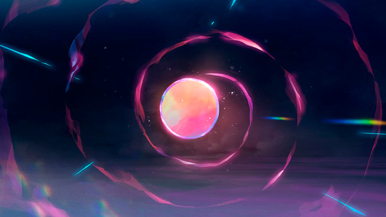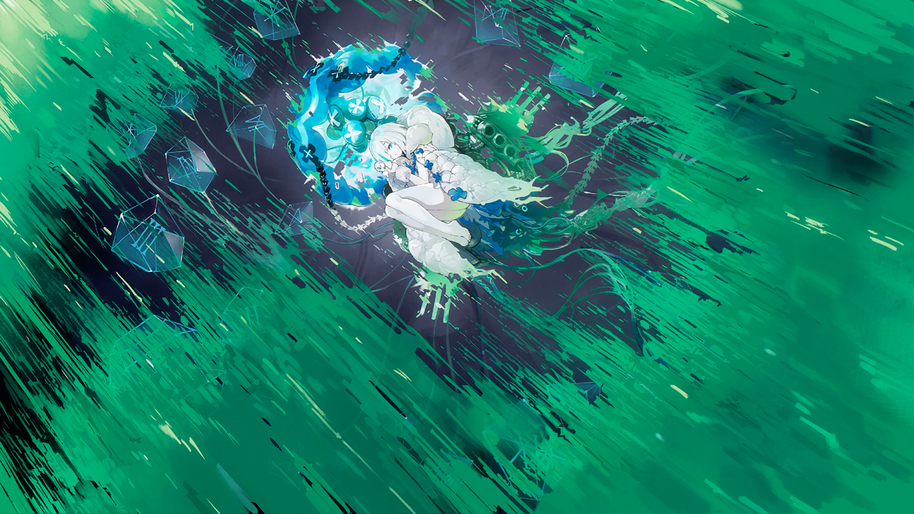 ... Весь свет начал собираться в капсуле. Он окутывает капсулу, Ядро Моря Звёзд, а затем и весь мир. Наконец, со вспышкой синего пламени... Голубой призрак прорывается сквозь её кокон. |