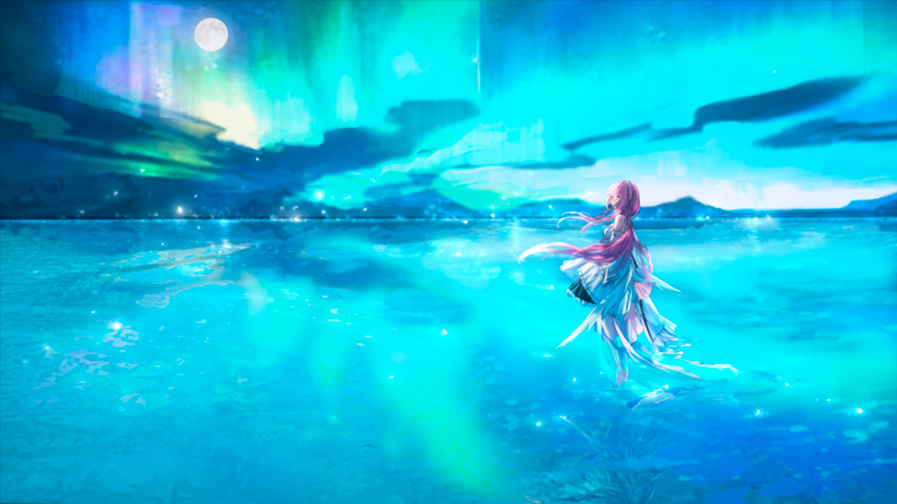 | Ленты света, постоянно меняющие свои цвета, озарили морскую гладь, которая должна была быть погружена в непроглядную тьму. Словно небесный занавес, они выписывали причудливые траектории под сиянием звезд. |