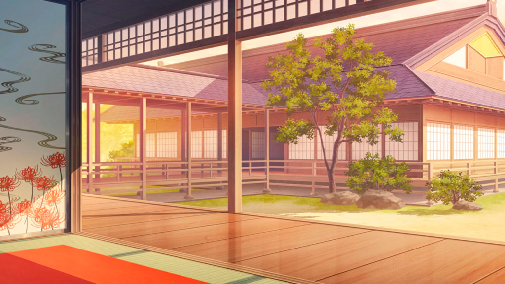 Девочка в платье внезапно перемещается дальше, под дерево во дворе кампуса, спустя мгновение она появляется под другим деревом, ещё дальше. |