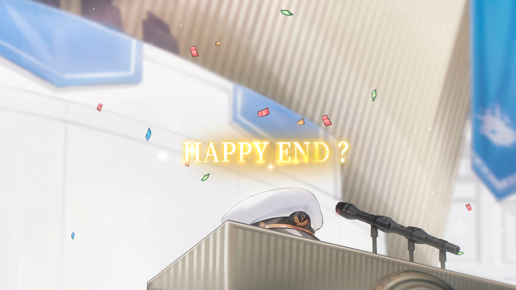 "Война с Сиренами закончилась, как и собрания, на которых обсуждалась реформация Лазурного Пути". "Лазурный Путь был цельным с момента своего основания и останется таковым во веки веков". "Престиж и связи, которые вы приобрели, сделали вас бесспорным лидером этой эпохи". "Вы обладатель бесчисленных титулов и обладаете неоспоримым статусом во всём мире". Тем не менее, у вас есть только один главный титул - Командир Лазурного Пути". |